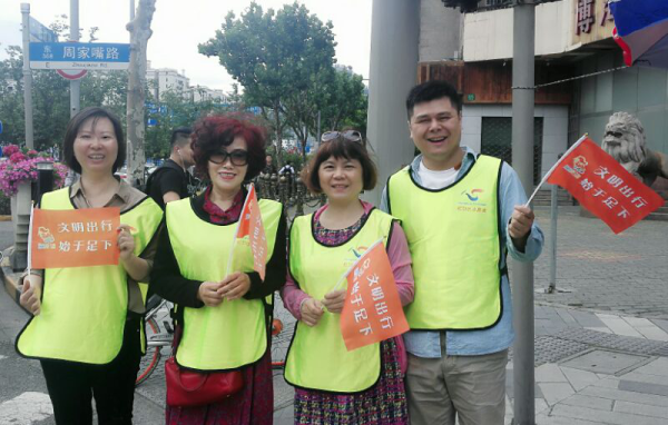 上海市理诚律师事务所作为上海市文明单位,一直在日常工作中将服务社会,公益为民放在重要的位置。2019年5月27日至5月31日期间,理诚所安排20名律师报名参加北外滩街道的交通文明岗执勤工作。20名律师分五组,每天四名律师于早上7:30-8:30在周家嘴路、新建路路口,身穿印有志愿者标识的马甲,手持旗帜分立在四个交叉路口,负责引导行人及非机动车遵守交通规则、劝阻不文明交通行为。