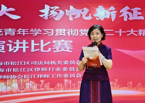为了迎接党的102周岁生日,进一步学习贯彻党的二十大精神,继续深化“争做党和人民满意的好律师”,6月26日下午,“学习二十大 扬帆新征程”松江区司法行政系统青年学习贯彻党的二十大精神演讲比赛决赛在云间会堂顺利举行。区司法局党组书记、局长潘琼,团区委副书记朱佳乐,上海视觉艺术学院教授田奇蕊,部分局班子成员和区律工委副主任出席活动。