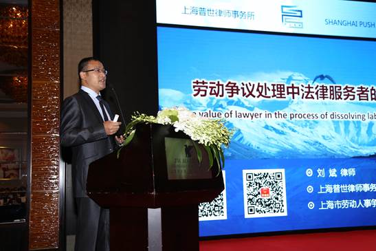 第二位演讲嘉宾是普世所合伙人、上海市劳动人事争议仲裁委员会仲裁员刘斌律师,他以“劳动争议处理中法律服务者的价值”为题与在座嘉宾进行分享。