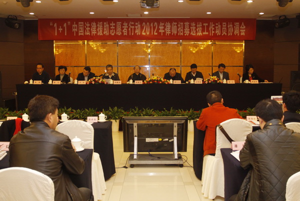 2012年3月14日下午,司法部律师公证工作指导司、中华全国律师协会、中国法律援助基金会在北京市培新宾馆联合举行“1+1”中国法律援助志愿者行动2012年律师招募选拔工作动员协调会。上海律协业务部主任潘瑜参加了本次会议。
