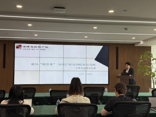 李梦园律师以“破局‘赔偿难’”:知识产权高判赔诉讼攻略——五维实战体系拆解”为题展开分享。讲座中,李梦园律师直击知产维权“灵魂三拷问”——胜诉率、判赔额与成本。讲座系统拆解了“五维实战体系”,从核心概念精解、行业大数据透视,到赔偿条款深度剖析、全流程诉讼设计及落地操作技巧,层层递进。参与培训的律师纷纷表示,讲座内容“干货满满、实操性强”,对提升知产维权效能极具启发!