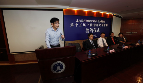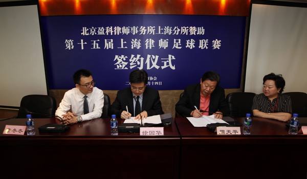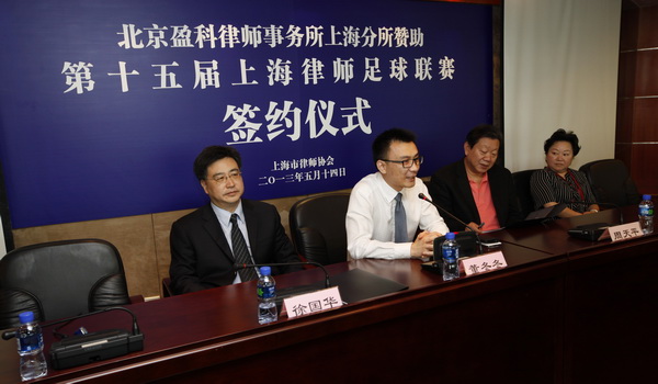2013年5月14日下午2点,北京盈科(上海)律师事务所赞助第十五届上海律师足球联赛签约仪式在鸿发国际报告厅顺利举行。