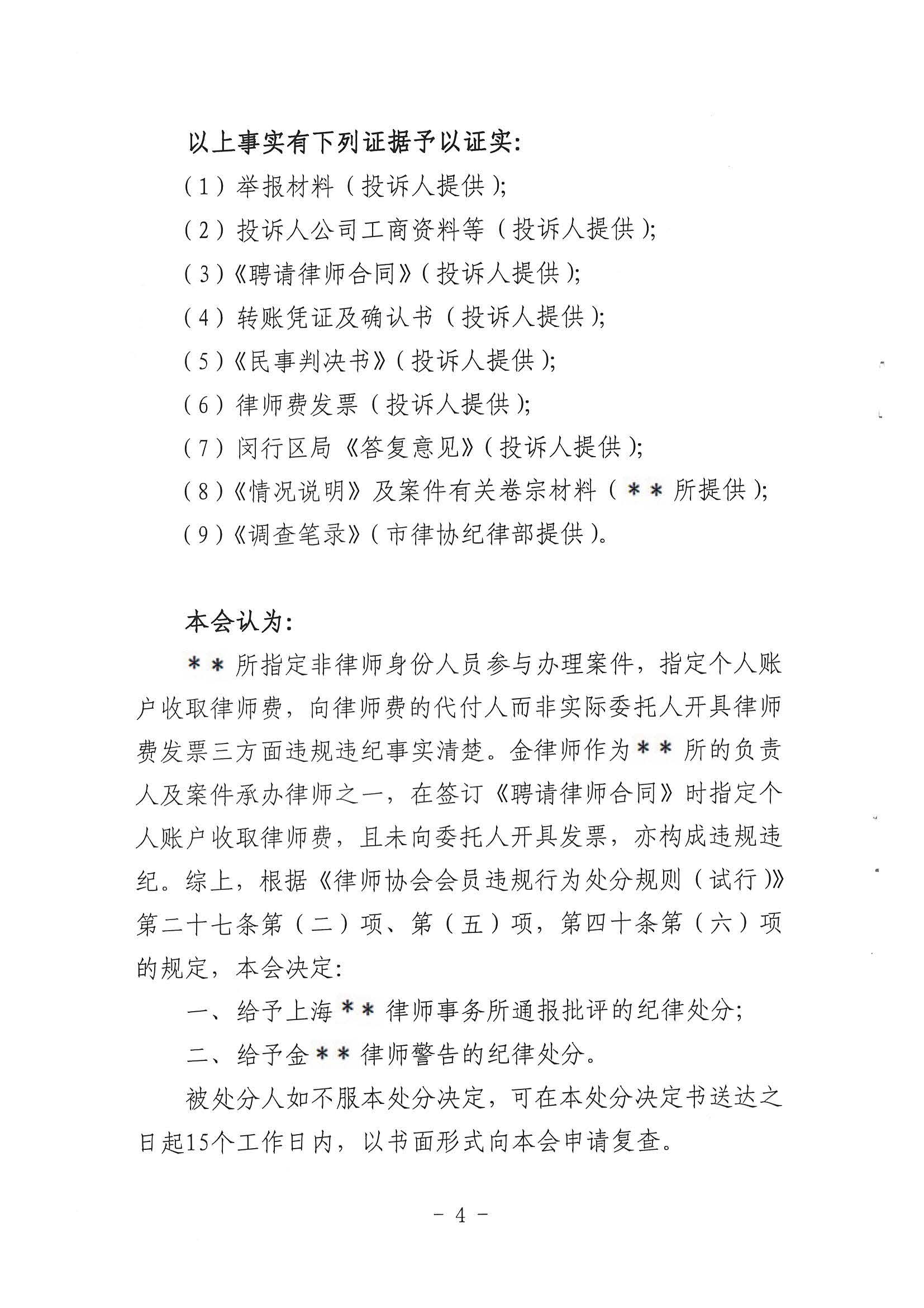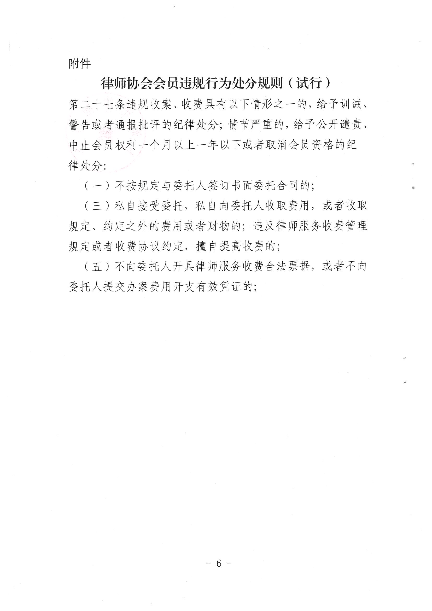 (三)私自接受委托,私自向委托人收取费用,或者收取规定、约定之外的费用或者财物的;违反律师服务收费管理规定或者收费协议约定,擅自提高收费的;