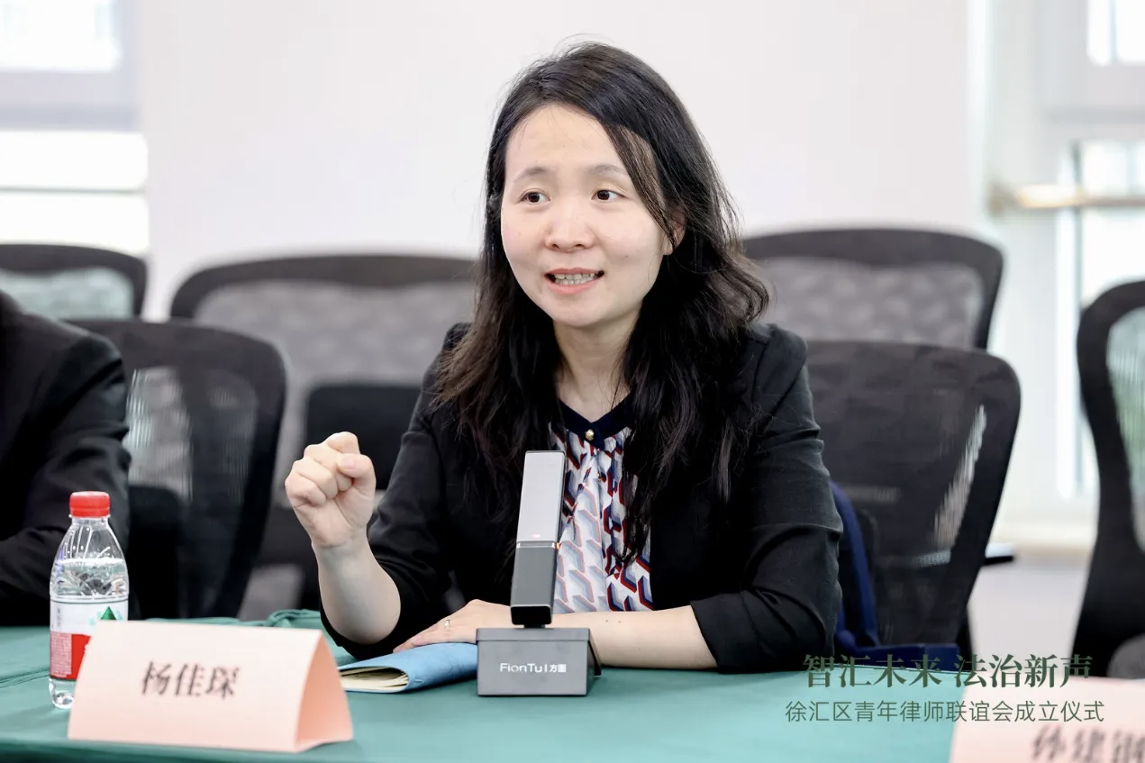 最后,区司法局党委委员、副局长杨佳琛作重要讲话。她对区青律联首届理事的当选表示祝贺,同时也希望大家不辜负广大青年律师的信任,将区青律联打造成青年律师合作交流、共同成长、服务社会的平台,聚焦涉外法治和人工智能创新应用先导区建设,最大程度地扩大青律联的辐射效能,展现徐汇青年律师的风采。