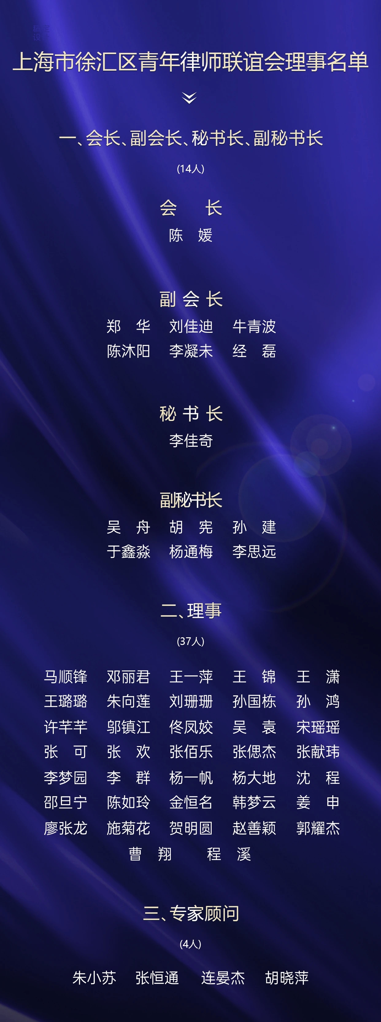 会上,徐汇律工委副主任孙建钢宣读了《关于成立上海市徐汇区青年律师联谊会首届理事会的决定》,希望各位青年律师通过青律联平台,进一步拓宽眼界、补足资源、发展自我、服务社会;区青律联会长陈媛聚焦党建工作、宣传与合作交流、会员服务、涉外法治人才、培训调研、文体活动六大部门核心职责及重点项目,具体介绍了青律联的工作规划;区司法局公服科副科长俞肖雅向与会理事重点介绍了“MTCC徐汇协议”“掌上公服”“西岸数字谷国际法律服务集聚区”“党心律动·护企出海公益法律服务团”等重点项目,号召青年律师积极参与,对接服务需求,产出标准化产品、推出精品课程、进一步做好为民、为企服务;徐汇律工委主任李华平从提升职业技能,履行社会责任、贡献行业智慧、服务区域经济发展、个人成长与传承等方面对区青律联的工作职责并提出殷切希望。