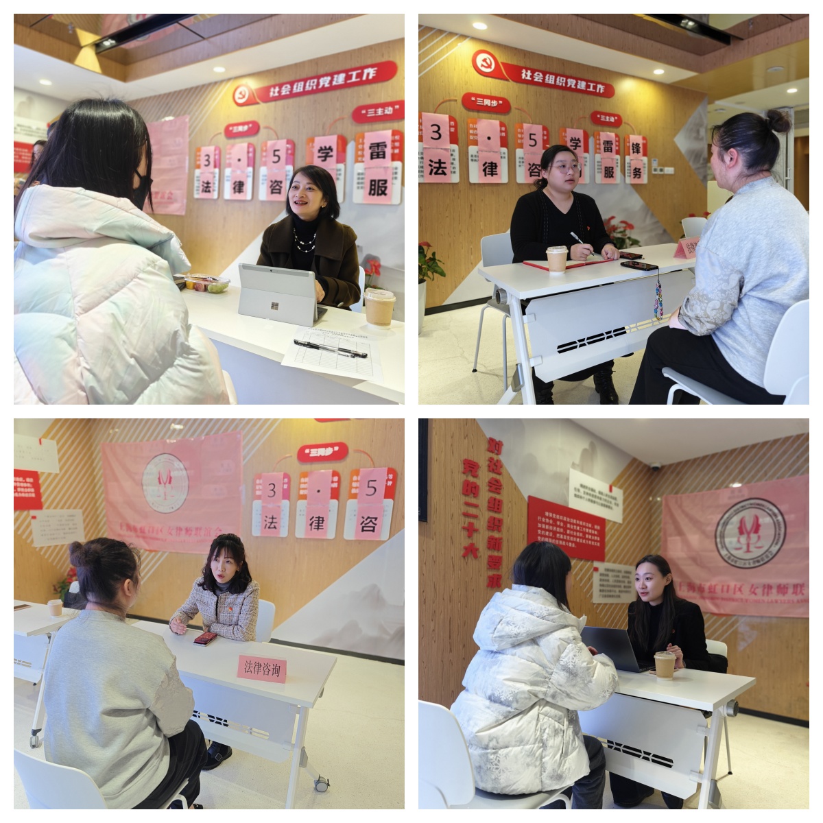 虹口区女律师联谊会安排光大所吴燕华、鹤铭所吴祺桢、天一所徐伟和郑诗怡四位律师前去浦东社会创新示范园开展公益法律咨询服务。