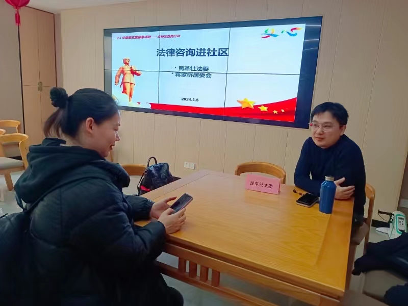上海市光大律师事务所高志磊律师在蒋家桥居委会为社区居民提供公益法律咨询服务。