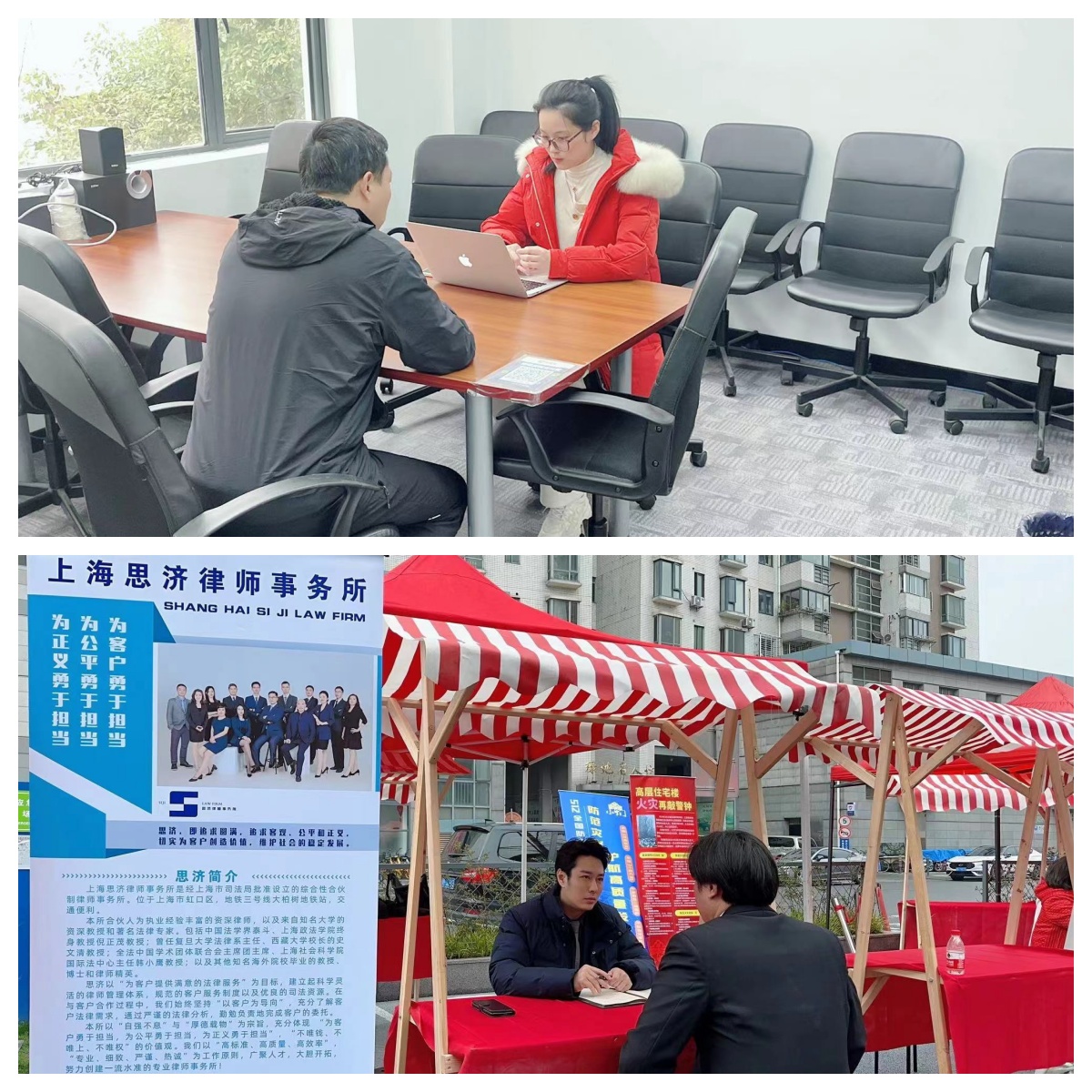 上海思济律师事务所何泯萱、陈飞两位律师分别在广纪路838号A栋、黄浦区绿地名人坊提供公益法律咨询服务。