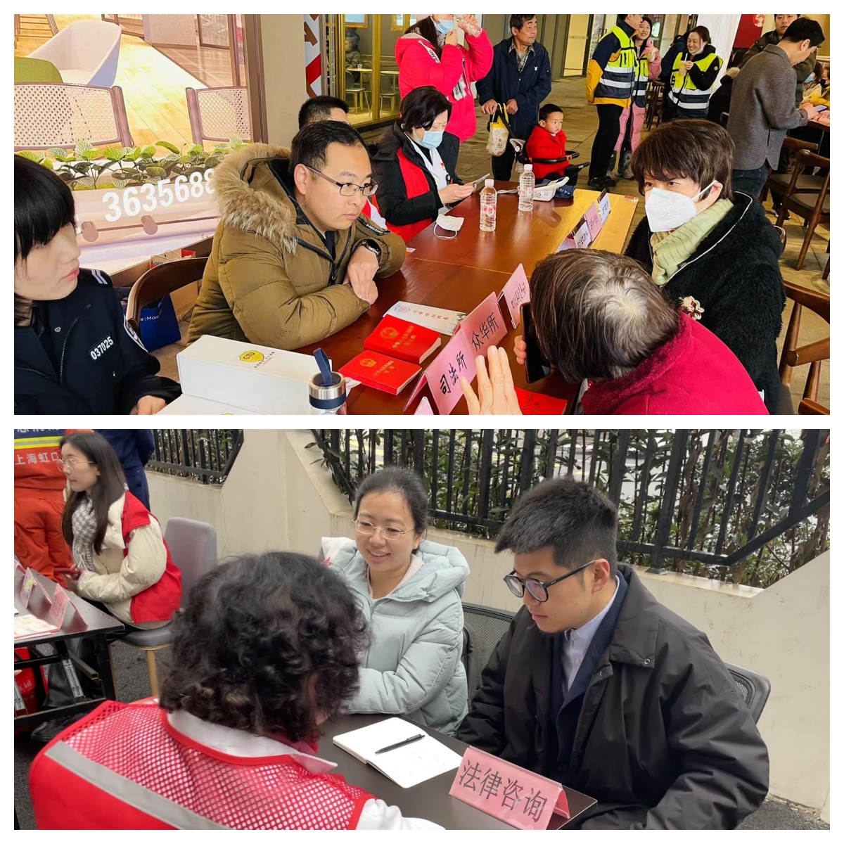 上海如闻律师事务所刘珊清、张珍两位律师在曲阳路街道银联居委为社区居民提供公益法律咨询服务。