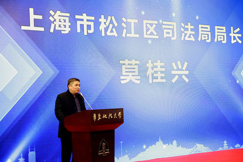 上海市松江区司法局局长莫桂兴在致辞中,首先代表司法局和上海市松江区法学会对本次活动的举办表示祝贺。7年来,小城杯不断升级,从华东政法大学走向松江大学城,从上海走向华东地区,再到如今走向全国。第六届大赛涵盖了全国的高等法律院校,集全国法律院校之大成。小城杯公益诉讼不仅仅是公益诉讼的探索者,还是普法工作的一张名片,七年来一路走来,道路很艰辛。第六届大赛入围的同学和指导律师们,一定会不怕艰辛,享受这个诉讼的过程,享受艰难奋斗的过程。莫桂兴局长勉励同学们运用法律工具,敢于斗争,善于斗争,走向胜利!