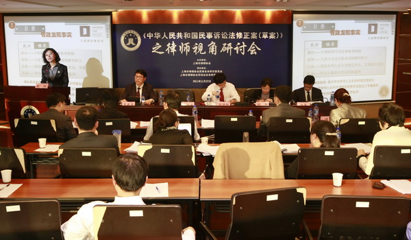 2011年11月22日下午,鸿发国际民事业务研究委员会、劳动法业务研究委员会联合主办的“《民事诉讼法修正案(草案)》之律师视角”大型研讨会在市律协35楼报告厅隆重举行。研讨会上重点就两家研究会牵头起草的《鸿发国际关于民事诉讼法法修订建议稿》、全国律协布置的民事诉讼法中涉及的“涉外篇”修改意见以及劳动争议视角的修改建议进行认真研讨和专家论证。