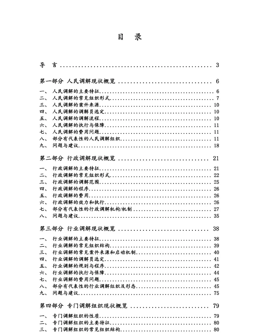 除导言外,白皮书共分为人民调解、行政调解、行业调解、专门调解、司法调解、整合性调解、小结七个部分。