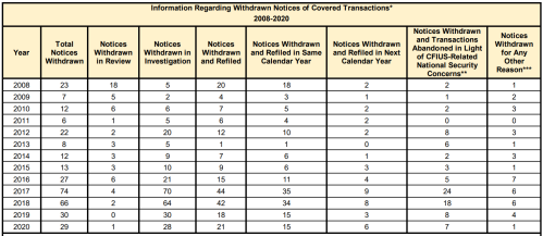 [1]CFIUS Reports and Tables,https://home.treasury.gov/system/files/206/CFIUS-Summary-Data-2008-2020.pdf
