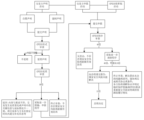 FIRRM新规对CFIUS审查程序进行了修订,目前CFIUS审查程序可以通过三种方式启动:(1)依据交易参与方的声明启动;(2)依据参与交易方的申报启动;或(3)CFIUS依职权启动。