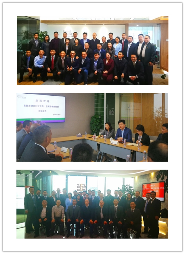 2019年11月7日上午,东莞市律师协会一行由东莞市律师行业党委专职副书记孙华带队,与市司法局政治处副主任、市律师行业党委副书记龙开族,市司法局律师工作管理科科长、市律师行业党委委员谢景慧,市律师协会副会长周云等一行三十余人来访市律协。上海市律协副会长杨波、副秘书长潘瑜接待了考察团一行并交流座谈。参加座谈的还有上海市律协理事、市律协律所规范发展委主任吴坚、副主任冯加庆,市律协能源资源与环境业务研究委员会主任、上海市金茂律师事务所党总支副书记吴荣良律师、光大会展中心律师事务所联合党支部书记、达隆所主任张洪喜律师等。