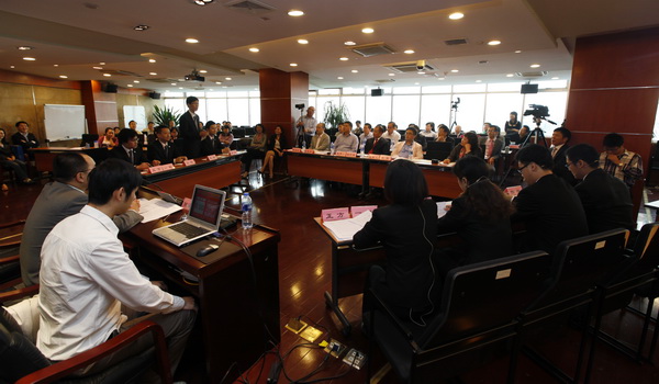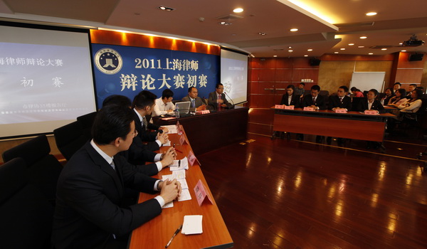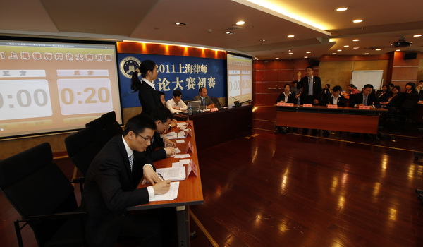10月23日上午,市律协报告厅律师们济济一堂,上海律师辩论大赛初赛第三场正在这里紧张地进行。