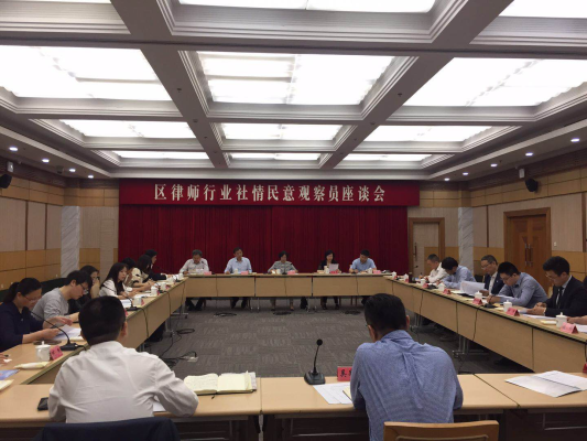 区司法局党委书记、局长韩权民主持会议。区司法局副局长、律师行业党委书记严建华解读《区律师行业社情民意观察员工作规则(试行)》。区政协副秘书长范志海简要介绍区政协社情民意观察员工作启动的相关背景。区政协委员代表和律师代表作交流发言。区政协委员工作室、区司法局、区律师工作委员会向首批社情民意观察员颁发聘书。