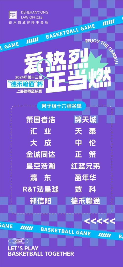 经过数周的激烈角逐和比拼,第十三届“德禾翰通”杯上海律师篮球赛男子组别第一阶段的比赛(小组赛)已圆满落下帷幕。十六支队伍凭借出色的表现和顽强的斗志脱颖而出,成功晋级!
