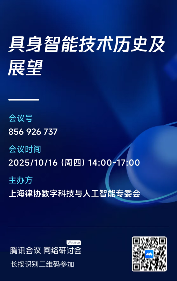 为帮助本市研究人工智能法律的执业律师深入了解生成式人工智能、具身智能技术历史及展望相关问题,促进提升对人工智能产业认知及专业服务能力,上海律协数字科技与人工智能专业委员会举办“数智未来,护航AI”之“具身智能技术历史及展望”讲座。具体安排如下: