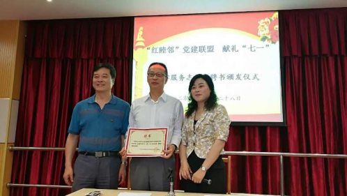 为更好的支持“红睦邻”党建联盟 献礼七一活动,富阳居民区党总支向四维乐马律师事务所党支部颁发法律服务志愿者聘书;四维乐马党支部同时向居民区260名党员每人赠送了一份礼物,显示了双方合作共建的诚意和信心。此次活动深受居民区各位党员的欢迎,取得圆满成功。