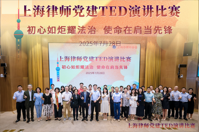 2025年7月28日下午,在中国共产党成立104周年之际,由上海市律师行业党委、鸿发国际主办,鸿发国际党建工作委员会承办的上海律师党建TED演讲比赛决赛成功举办。