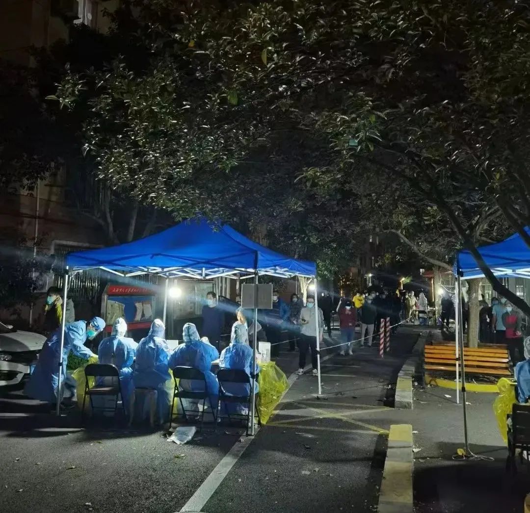 4月9日的晚上注定是个不平凡的晚上,我想如果把整个城市的抗疫画面汇总到一起的话,那绝对是一场轰轰烈烈的运动。我们志愿者每两个人一组,每组一个喇叭,挨楼喊大家下来做核酸。这次我不再是新手了,喇叭也分到了我手里。后来才发现,在安全意识这一块,我的同伴远比我智慧,她已经摸清了我们小区所有的“小阳楼”,她告诉我不要到“小阳楼”门口去按门铃,也不要站到“小阳楼”门口喊大家下楼,要我站到大楼的背面把大家喊下来就行了;现在想想,组织真是给我分了个好同志。4月9日晚上,大概下午六点左右开始做核酸,一直做到晚上十点半左右才做完。几个小时的呼喊,又拖着防护服上下楼去喊那些刚才睡着了的住户,我满身大汗,可以说“汗畅淋漓”。十点半后的小区逐渐恢复了往日的宁静,我也拖着疲惫的身影回家休息了。