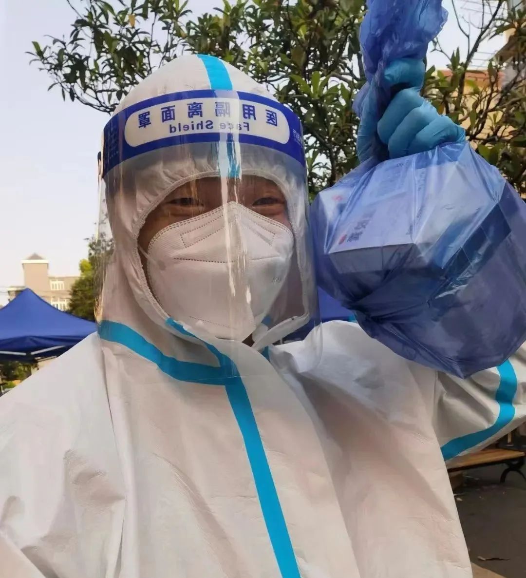 我们志愿者是两个人一组,一组负责三栋楼,大概百十户左右。我是跟一个姐姐一组,她脾气很好,一看就是常年做社区服务的。我们住的小区是典型的上海老破小,没有电梯,送抗原只能靠两条腿在七层楼(以前不知道小区有些楼栋竟然还有七楼)上下奔波。我和那姐姐提着两大包抗原试剂,穿着厚厚的防护服,从一楼开始挨家挨户送,一直送到七楼。有些住户不论怎么敲门都不会开的(开门后大家的统一口径就是刚才睡着了,没有听到敲门),这样的住户,你还要再跑到楼下去按一次门铃。第一次感受到,上下楼可以让一个年轻人喘成这样;更麻烦的是,你根本不会预料到,你喘气的时候,护目镜是会起雾的;你更不会预料到起雾的护目镜再加上阴暗的楼道,对一个志愿者来说意味着什么,意味着在雾气消失之前,你只能背着东西,摸着楼道护栏一点一点地往上走,走到每层后,你再凑到别人家的门牌号前,透过起雾的护目镜,用尽自己好眼力,才能看清这到底是哪一家,以便大喊一声“某某号某某室,我是社区的志愿者,来给你们送抗原了,请开门…”虽然过程些许艰辛,但是最终不辱使命,成功把抗原送到每家每户,一家不落。
