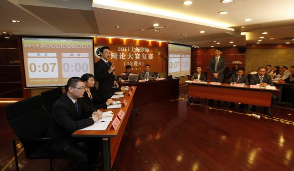第二场比赛由杨浦睿扬队和卢湾队以律师执业权利的保障应如何进一步完善为题展开激辩,正方杨浦睿扬队认为应以完善立法为主要任务,而反方卢湾队则认为应首先做到严格依法。双方用通俗的语言,生动的例子给大家带来了一场精彩的辩论。