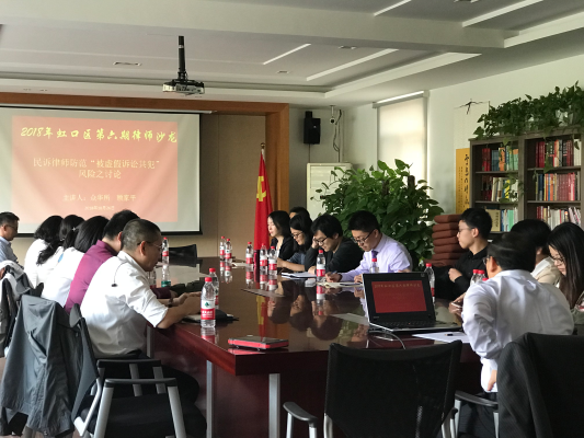 10月1日起,最高院、最高检出台的《关于办理虚假诉讼刑事案件适用法律若干问题的解释》正式实施,文中对于民事诉讼中、诉讼代理人构成虚假诉讼的共同犯罪的情形作出了明文规定。为进一步引起每一位律师的重视,2018年10月26日下午,2018年度虹口区第六期律师沙龙特邀上海众华律师事务所高级合伙人顾家平律师结合自身经验以“民诉律师防范 ‘被虚假诉讼共犯’ 风险之讨论”为主题开设讲座,就如何防范“被虚假诉讼共犯”风险提出宝贵意见和建议。来自虹口区多家律所的20多位律师参与了本次沙龙活动。