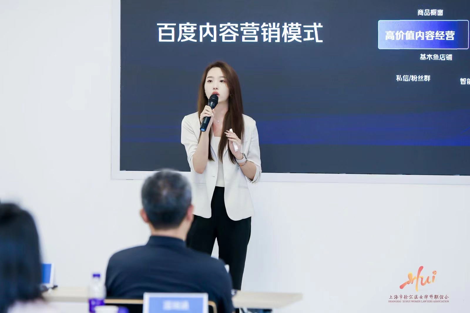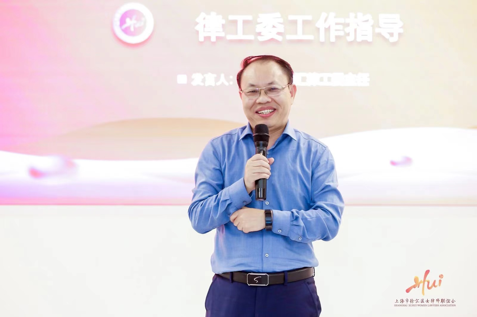 下半场会议由区女律联公益普法团团长李林芳主持,首先由徐汇区司法局副局长王晶进行致辞。