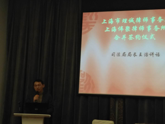 最后,司法局王浩局长讲话:理诚所和伟聚所的顺利合并,体现了做大做强的发展理念,体现了不断创新驱动、发展转型的思考和实践。衷心希望两所合并后进一步发挥好强强联合的优势,进一步加强资源共享,在融入区域经济发展和实现自我发展两者中取得双赢。最后衷心祝愿理诚所与伟聚所,努力将自身打造为一家更具品牌特色的强所,成为我区律师行业规范化、专业化、团队化建设的典范。