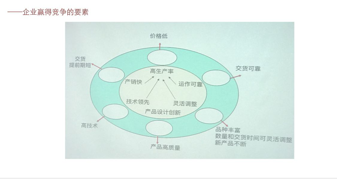 从下图可以看到企业价值链的八大环节,不仅仅是生产销售环节,在研发环节,售后服务等各个环节,在每个环节都要充分考虑到满足客户的需求。