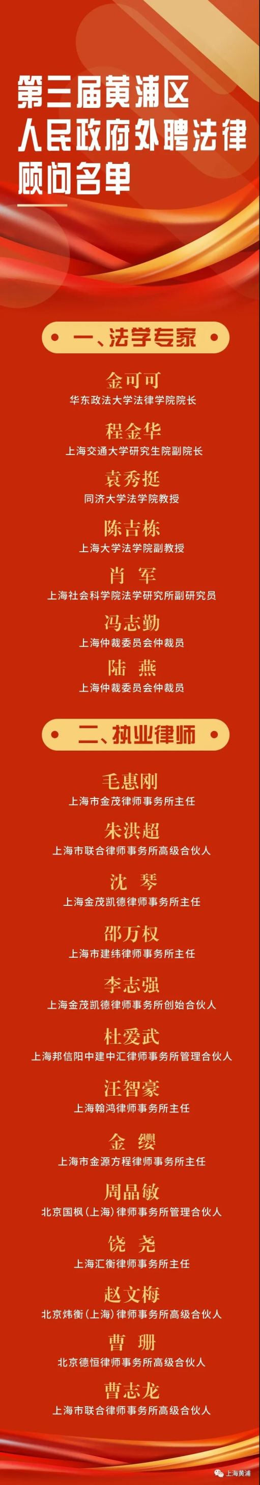 黄浦区人民政府区长沈山州,副区长赵勇、洪继梁、袁园、王鼐、林竞君出席。沈山州向第三届黄浦区人民政府外聘律师顾问颁发聘书并讲话。赵勇主持仪式。第三届区政府外聘法律顾问代表曹志龙、赵文梅作交流发言。