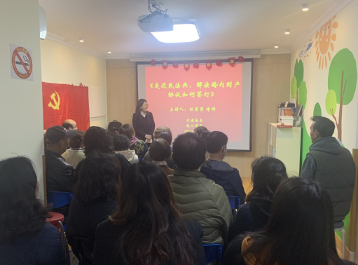 2021年4月9日,应黄浦区五里桥街道邀请,黄浦青年律师民法典宣讲团成员、上海华夏汇鸿律所律师任芳芳律师走进打浦居委、铁二居委,开展了一场以《走近民法典,解读婚内财产协议如何签订》为主题的讲座。