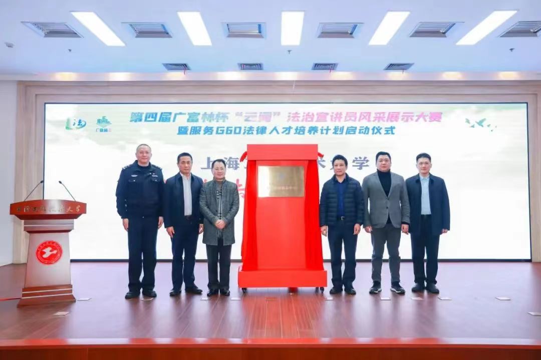 松江区司法局党组成员、副局长陈炳泉、松江区广富林街道党工委副书记许亦军、松江公安分局大学城派出所所长朱建、上海工程技术大学保卫部(处)长鲁柏青、上海工程技术大学通识教育中心主任胡越、上海工程技术大学团委书记陈翼然为上海工程技术大学公共法律服务中心揭牌。