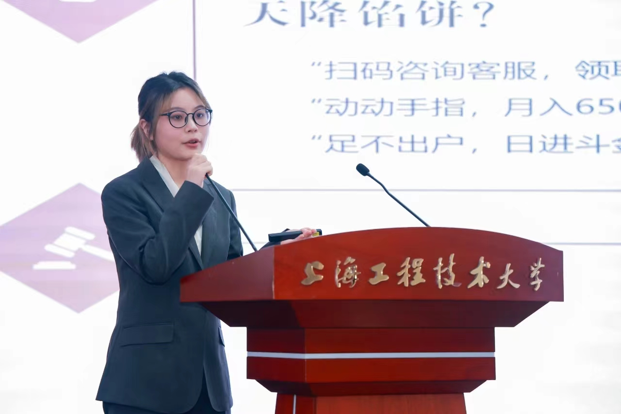 不同于往届,今年的决赛在大学校园内举行,选手也都是在校大学生,他们在松江律师一对一赛前指导下,聚焦禁毒、民法典、消费者权益保护、反诈等主题,以或生动或诙谐的方式讲述着一个个鲜活的法治故事,为现场观众献上一场法治文化盛宴。