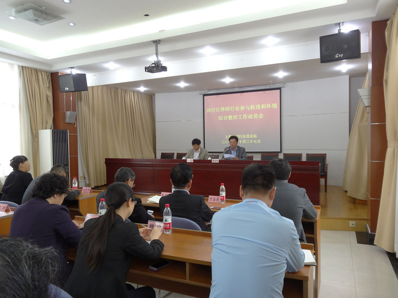 为更好地发挥广大律师在参与地区经济建设、维护社会稳定中的职能作用,依法推进我区拆违和环境综合整治工作。2015年10月27日,闵行区司法局组织召开了律师行业参与拆违和环境综合整治工作动员会。区司法局党委副书记、局长金海民、党委副书记周信根出席会议。