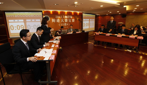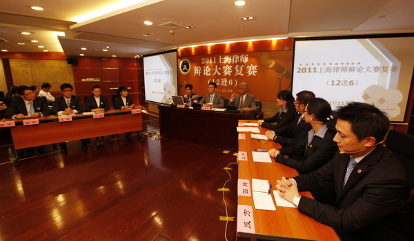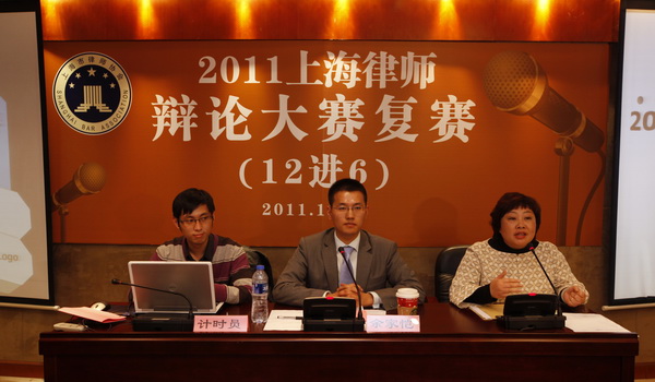 11月19日下午,上海律师辩论大赛复赛(12进6)下半场比赛在主持人的宣布下准时举行。