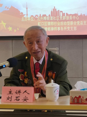为庆祝中国共产党建党一百周年华诞,组织党员群众深入学习党史,继承优良传统,汲取奋进力量,4月20日下午,上海捷铭律师事务所与北外滩街道社区党群服务中心、虹口区律师行业活动型联合党总支联合开展“学党史 继传统 促发展”主题党课学习活动,邀请中国人民解放军原20军老战士、上海新四军“沙家浜”部队历史研究会会长刘石安讲述老一辈革命家的英雄事迹与革命精神。
