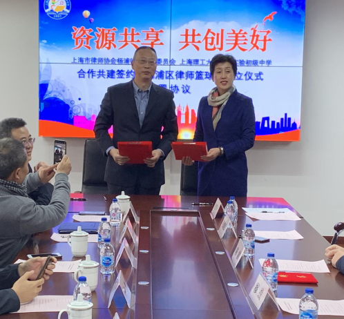 友谊赛结束后,本次杨浦律工委与上海理工大学附属实验初级中学合作共建协议签订仪式暨杨浦区律师篮球队、啦啦队成立仪式圆满结束!