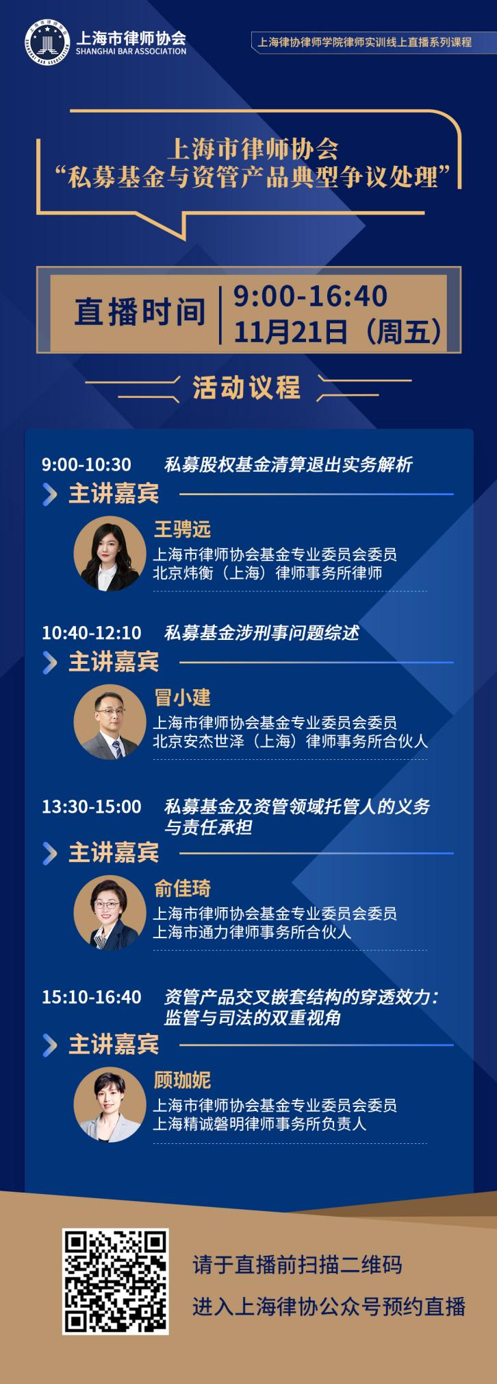 主讲人:李晓燕,上海律协基金专业委员会委员、北京金诚同达(上海)律师事务所律师