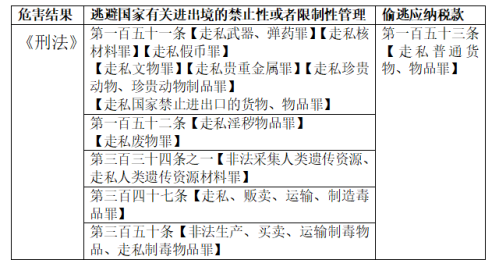 通过上述梳理与分析可按行为的危害结果将走私犯罪分为两类,详见下表: