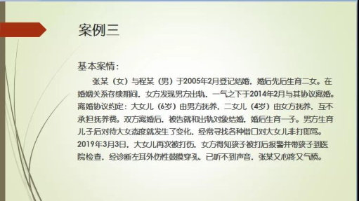 她在讲座中分享了7个基层妇联经常会遇到的典型案例,涉及家庭暴力、非婚同居、抚养权变更、邻里纠纷、物业停车等内容,与在场的维权干部共同探讨维权思路、处置流程,讲解维权工作操作要点。
