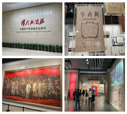 纪念馆展览主要包括五个部分,第一部分“前赴后继、救亡图存”,第二部分“民众觉醒、主义抉择”,第三部分“早期组织、星火初燃”,第四部分“开天辟地、日出东方”,第五部分“砥砺前行、光辉历程”。跟着展览馆的指示牌,党员同志们一一进行参观。以文物、图画、雕塑等主要素材为依托,借助情景重现、多媒体科技等技术,党从诞生到发展壮大这一波澜壮阔的历史展现在党员同志们面前。