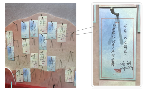 展厅的最后是一处留存纪念的地方。党支部同志饱含对党的祝福和对法治中国的美好愿景留念。