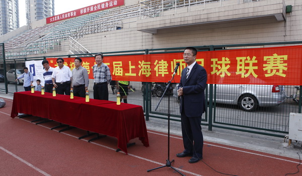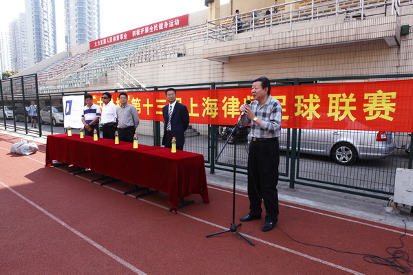 开幕式上,北京市大成律师事务所上海分所主任刘逸星发表了热情洋溢的讲话;傅玄杰律师事务所余立人律师、裁判长葛留善分别代表运动员、裁判员进行宣誓;市律协副会长、本次组委会主任周天平宣布比赛开始,自此今年的上海足球比赛正式拉开帷幕。随后,周天平副会长和刘逸星主任共同为此次比赛开球。