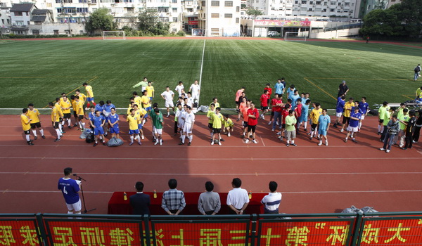在当天的开幕式上,16支球队全部亮相,16种不同颜色的队服,在绿茵场上光彩夺目,充分展现了上海律师的精神风貌。