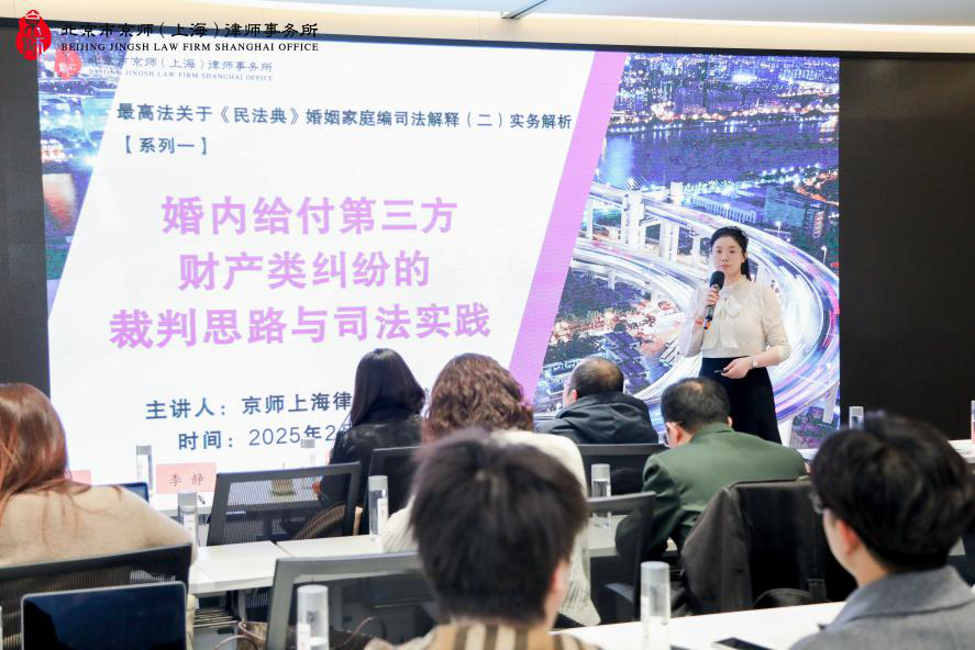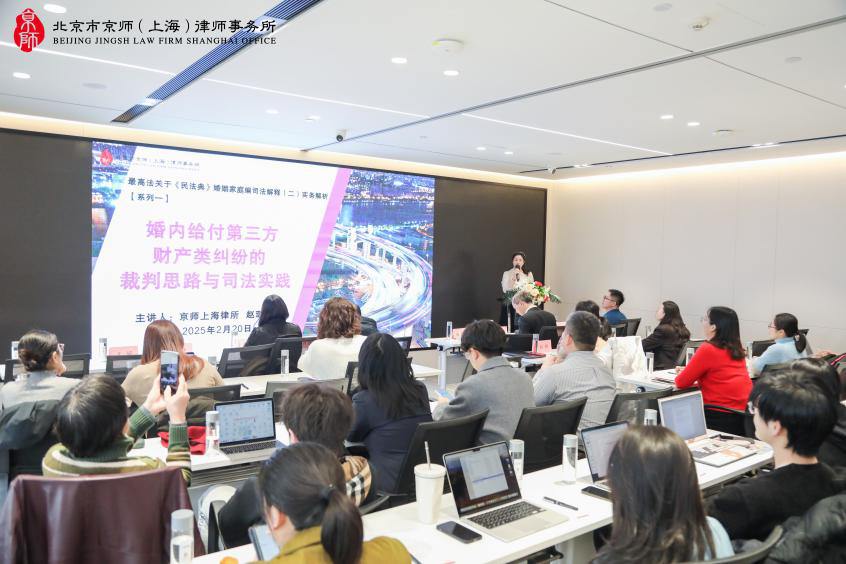 2025年2月20日下午,由虹口区青年律师联谊会与北京市京师(上海)律师事务所联合主办的“虹律智行”之“婚内给付第三方财产类纠纷的裁判思路与司法实践”专业讲座顺利举行。本次讲座由京师上海律所合伙人赵璐律师主讲。京师上海律所合伙人陈木华律师担任主持人。