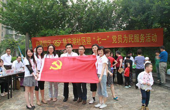 为纪念中国共产党成立九十三周年,深入开展区域大党建活动,6月28日下午,刘春雷所党支部携手祥腾联合党支部深入大宁慧芝湖社区,开展党员为民服务活动。来自祥腾财富广场的十余家企业及农商银行汶水路支行、工商银行马戏城支行、大宁街道招商办、工商所、税务所等部门的党组织负责人及党员代表参与本次活动。