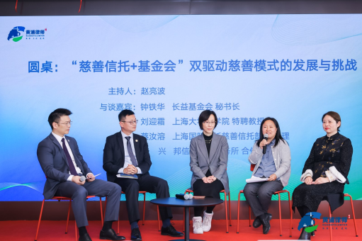 茶歇过后,活动进入圆桌分享环节。该环节以“慈善信托+基金会”双驱动慈善模式的发展与挑战为主题,邀请了上海大学法学院特聘教授刘迎霜、上海国际信托慈善信托部总经理蔡汝溶、长益公益基金会秘书长钟铁华、上海邦信阳律师事务所合伙人高兴律师参与讨论。嘉宾们分享了各自在慈善信托和基金会领域的经验和见解,为慈善事业的未来发展提供了宝贵思路。